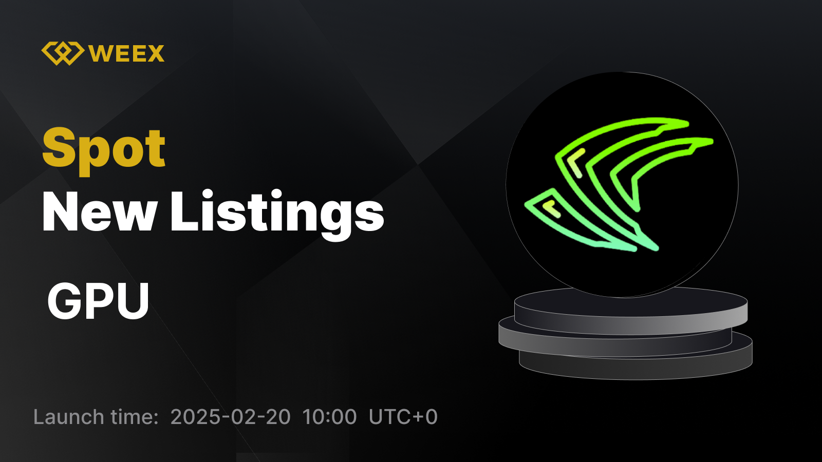 We are pleased to announce that GPU will be listed on WEEX spot trading. Details are as follows: