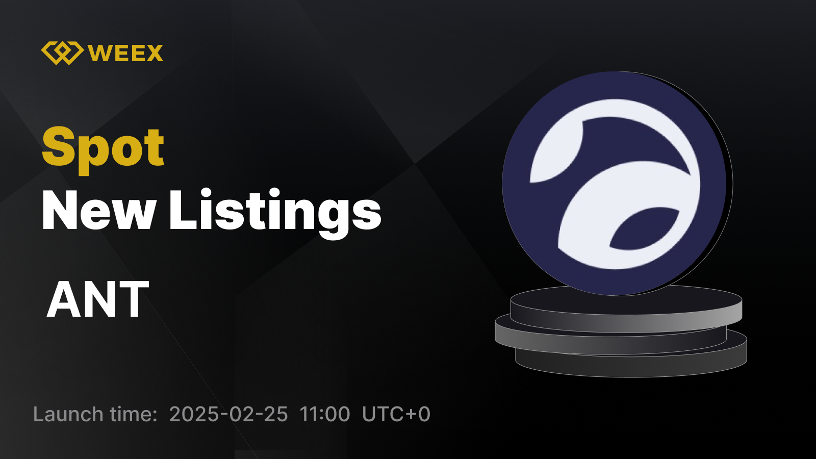 We are pleased to announce that ANT will be listed on WEEX spot trading. Details are as follows: