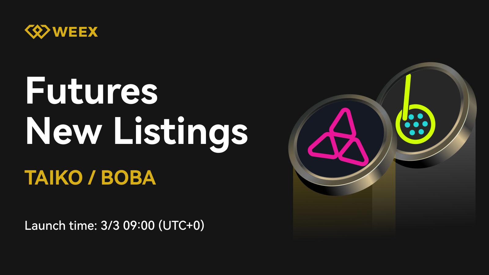 WEEX Futures will launch TAIKO / BOBA perpetual futures trading pairs at 3/3 09:00 UTC+0 . These futures are denominated in USDT and offer various leverage to meet the needs of different investors.