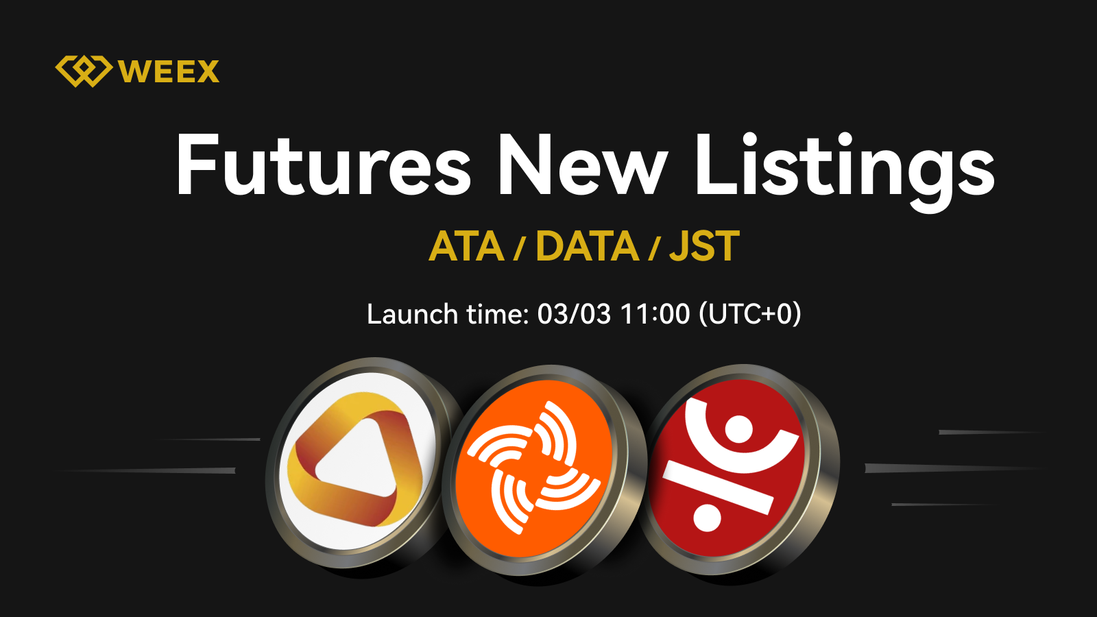 WEEX Futures will launch ATA / DATA / JST perpetual futures trading pairs at 3/3 11:00 UTC+0 . These futures are denominated in USDT and offer various leverage to meet the needs of different investors.