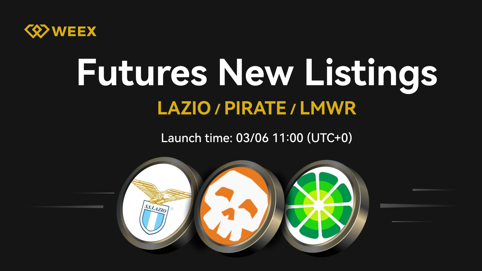 WEEX Futures Launches LAZIO / PIRATE / LMWR - 3/6 11:00 UTC+0