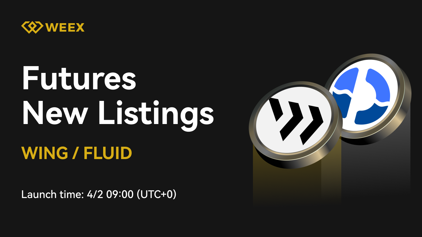 WEEX Futures will launch WING / FLUID perpetual contract trading pairs at 4/2 09:00 UTC+0 . These futures are denominated in USDT and offer various leverage to meet the needs of different investors.
