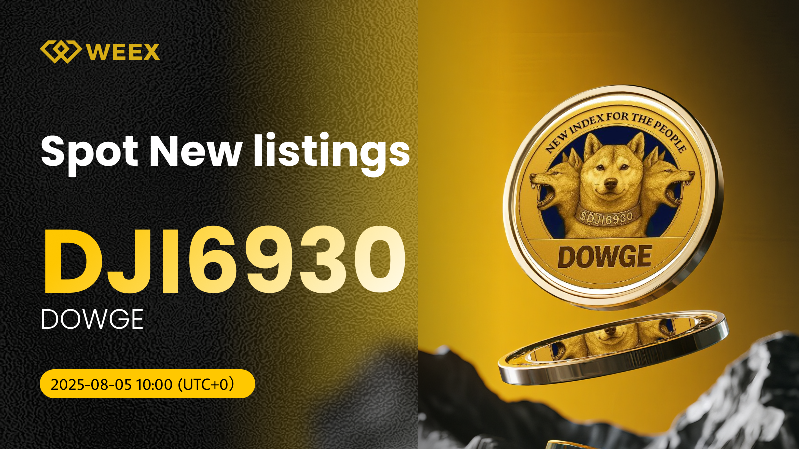 We are pleased to announce that DOWGE (DJI6930) is now officially available on WEEX spot trading! From now on, you can trade DJI6930/USDT easily on the WEEX platform. Details are as follows: