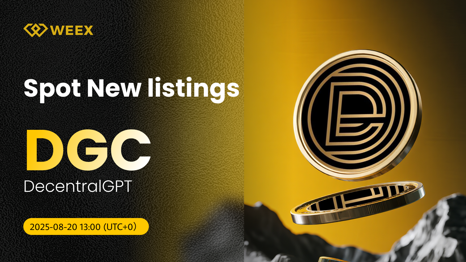 We are pleased to announce that DecentralGPT (DGC) is now officially available on WEEX spot trading! From now on, you can trade DGC/USDT easily on the WEEX platform. Details are as follows: