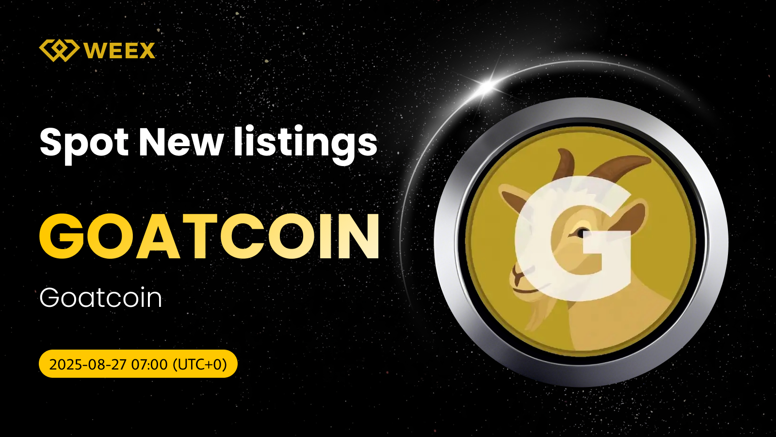 New Listing: GOATCOIN/USDT Spot Trading Available on WEEX from Aug 27!