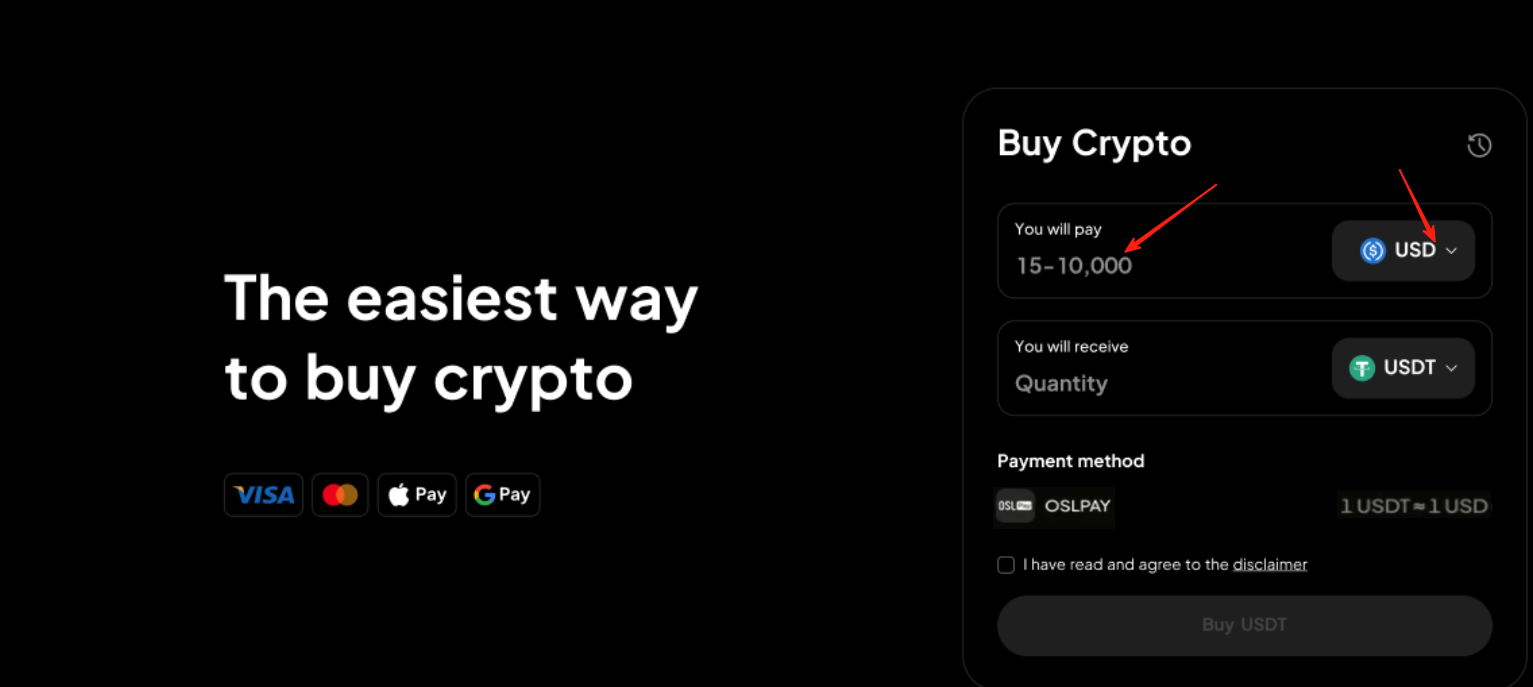 Step 1: Go to "Quick Buy," enter the amount, and choose a payment method.