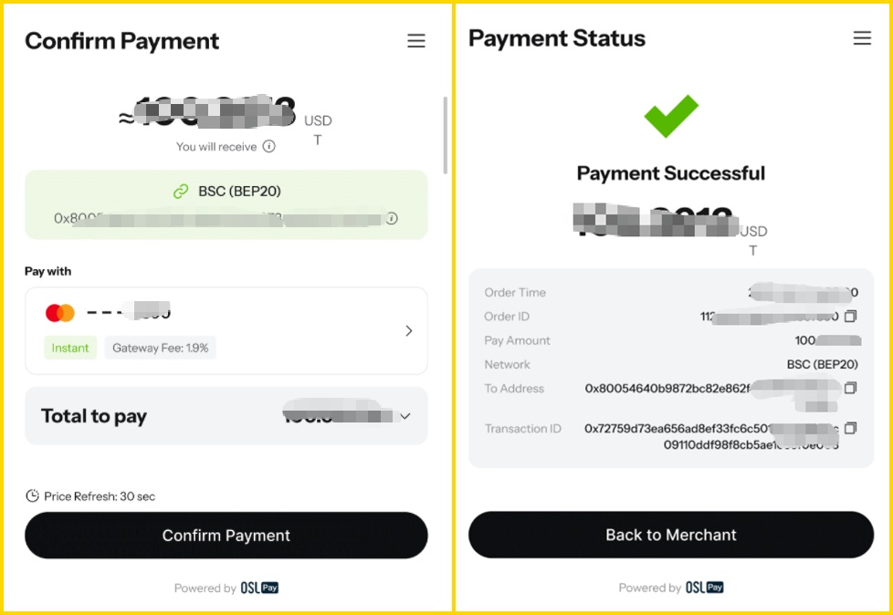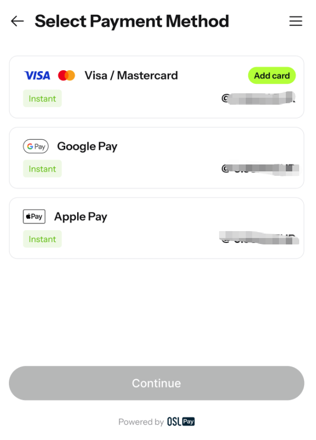 Step 2: You'll be redirected to OSL Pay. Log in to your OSL account, enter the verification code, and continue.