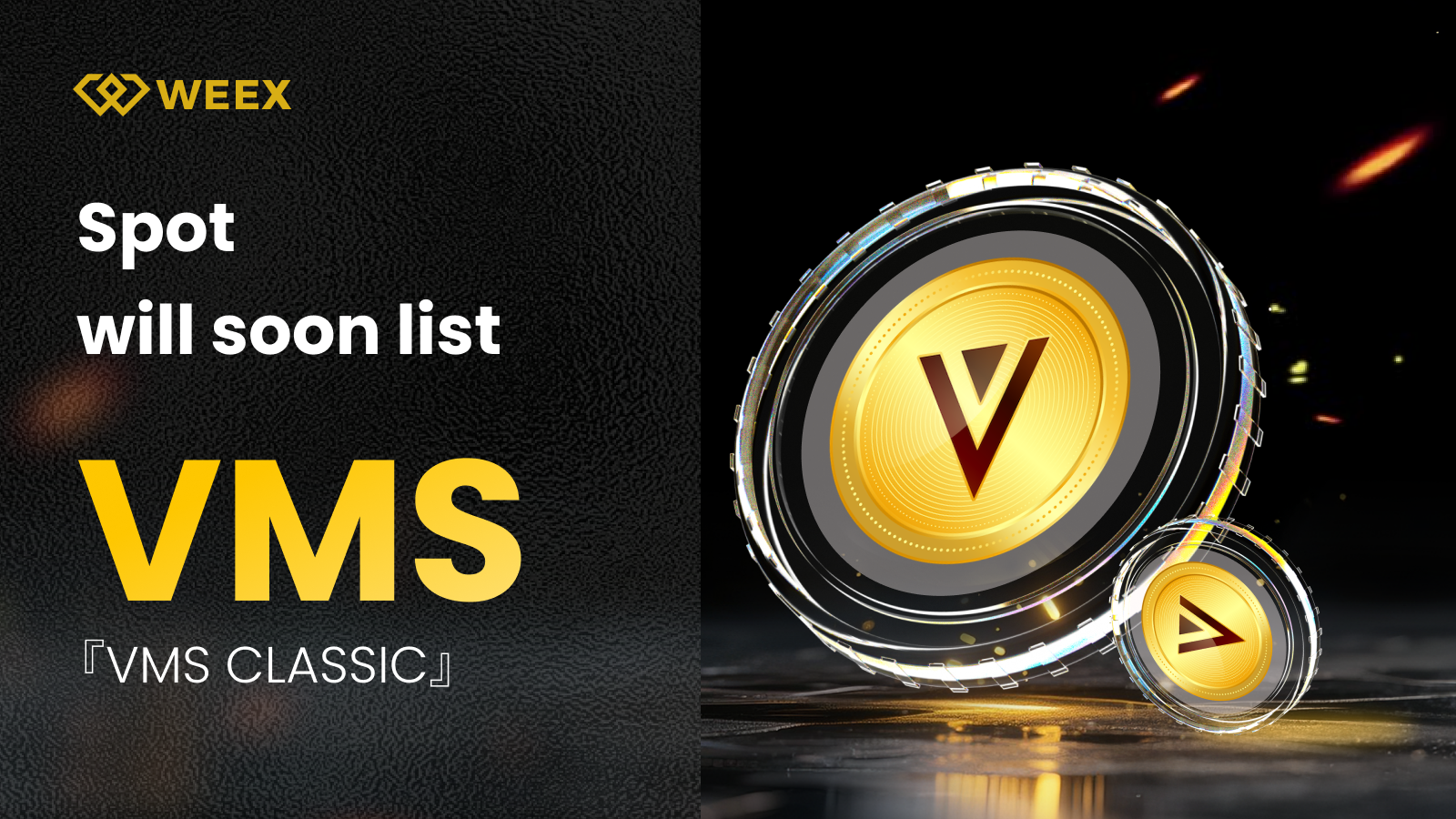 We are pleased to announce that VMS CLASSIC (VMC) will soon be available on the WEEX spot trading market. Keep an eye out for the subsequent announcement for more details!