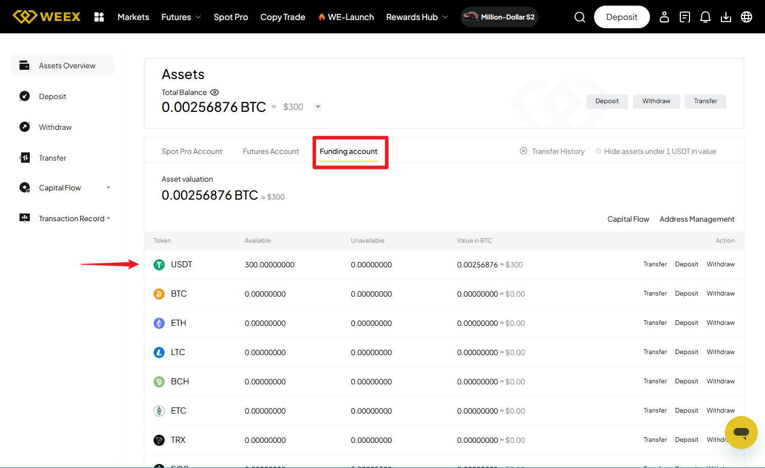 - Ardından, satın aldığınız kripto varlıkları görüntülemek için doğrudan Fonlama Hesabınıza gidebilirsiniz.