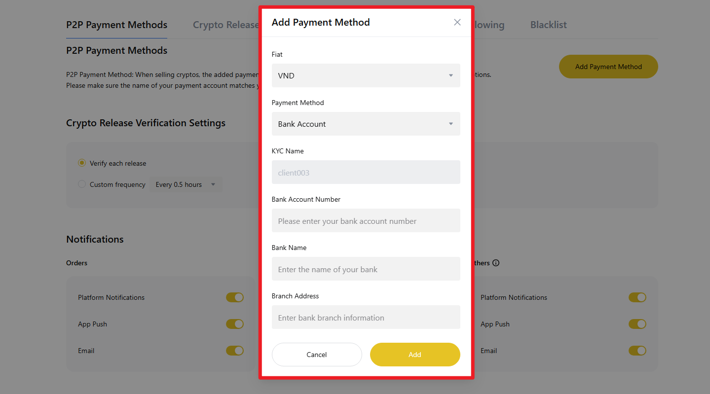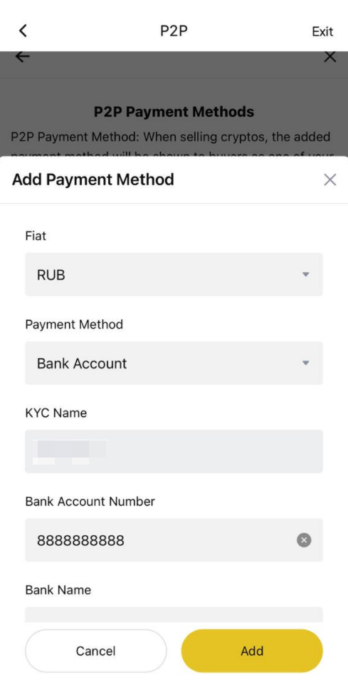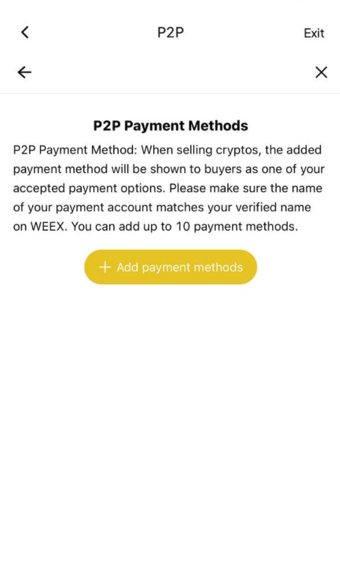 "P2P Ödeme Yöntemleri" altında, "Ödeme Yöntemi Ekle" düğmesini seçin.