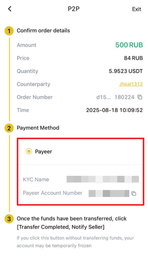 Lütfen sağladığınız hesap adının WEEX'te KYC doğrulamanızda kullanılan adla aynı olduğundan emin olun.