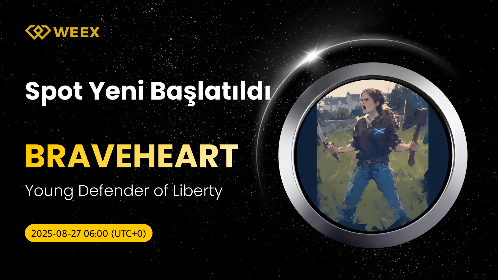 Yeni Liste: BRAVEHEART/USDT Spot Ticareti 27 Ağustos'tan itibaren WEEX'te!