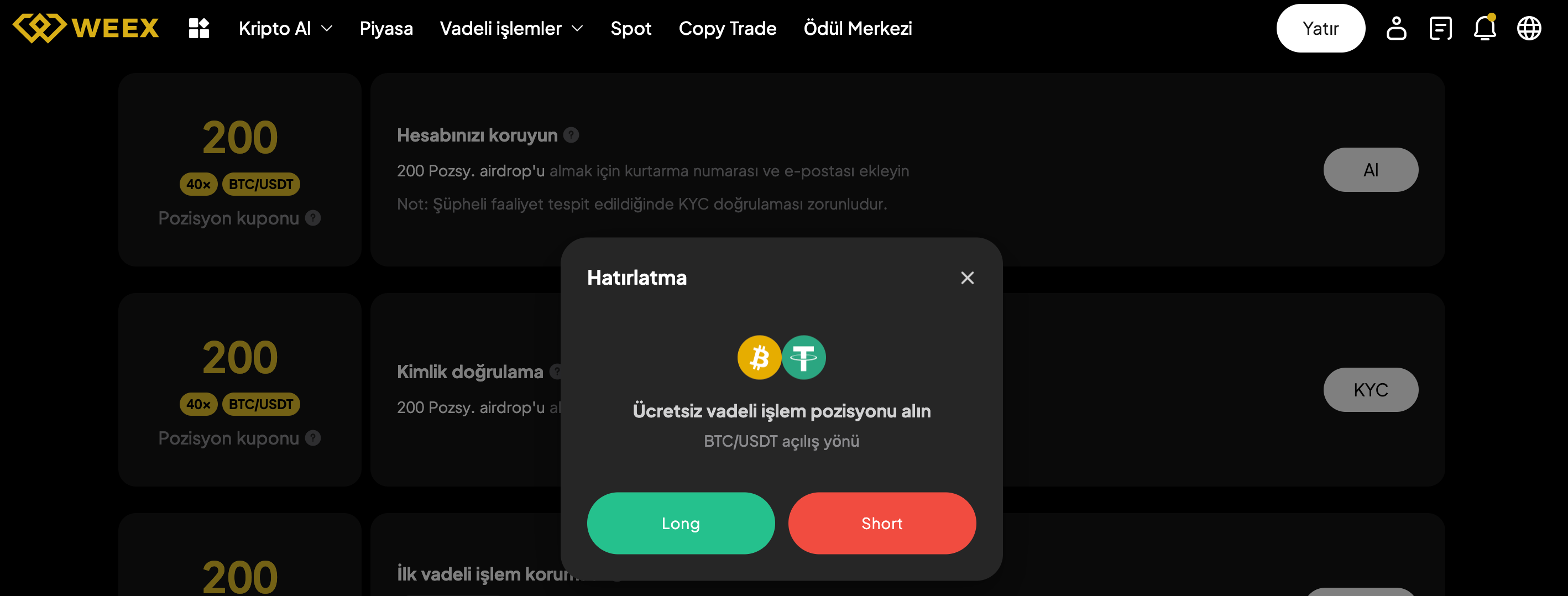 Kupon talep edildiğinde, sizin için otomatik olarak gerçek bir vadeli işlem pozisyonu açılır — manuel sipariş vermeye gerek kalmaz, bu da işlemi hızlı, sorunsuz ve yeni başlayanlar için kolay hale getirir.
