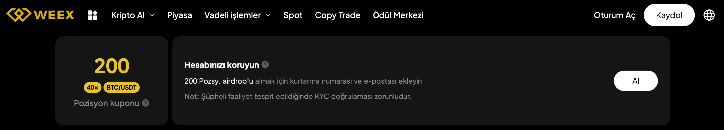 - Etkinlik sayfasından Pozisyon Airdrop Kuponunu talep edin;
