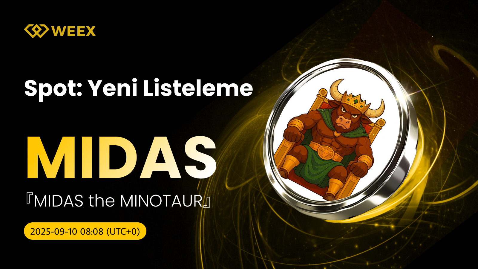 Midas the Minotaur'un MIDAS the MINOTAUR (MIDAS) artık WEEX spot ticaret piyasasında resmi olarak satışa sunulduğunu duyurmaktan mutluluk duyuyoruz! Bundan böyle, MIDAS/USDT ile kolayca işlem yapabilirsiniz. İşte daha fazla ayrıntı: