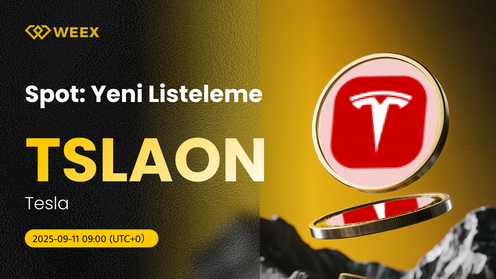 Yeni Listeleme: TSLAON/USDT Spot Ticareti 11 Eylül'den itibaren WEEX'te mevcut!