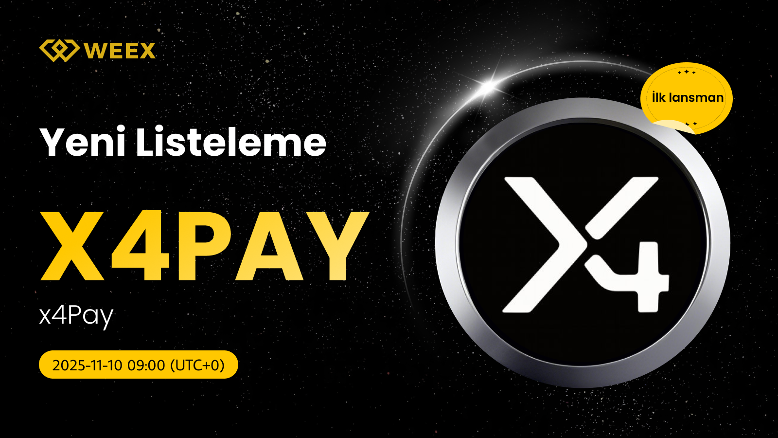 X4PAY/USDT ticaretinin artık WEEX'te aktif olduğunu duyurmaktan mutluluk duyuyoruz. Listeleme detayları aşağıdadır: