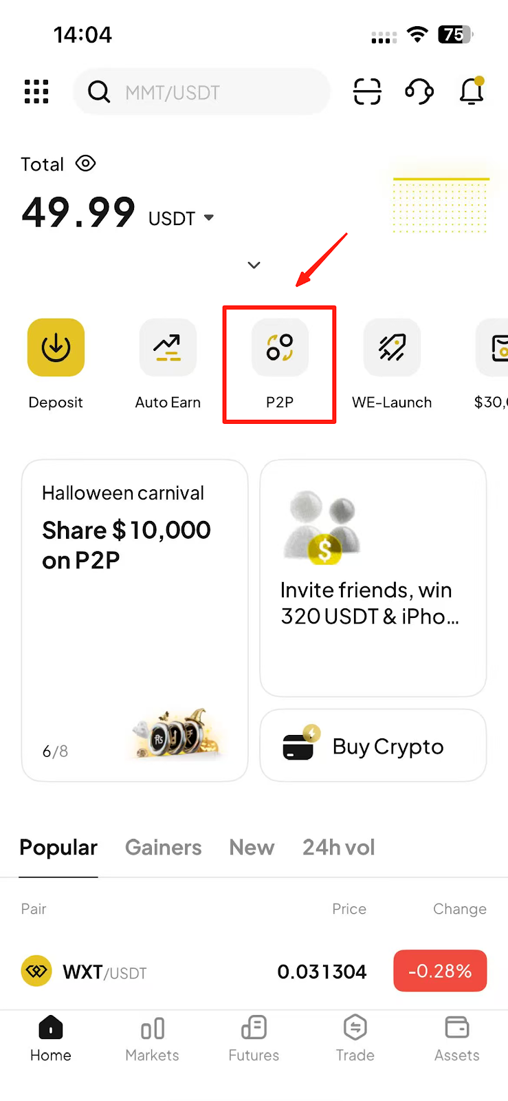 - Ana sayfada "P2P"ye dokunun.