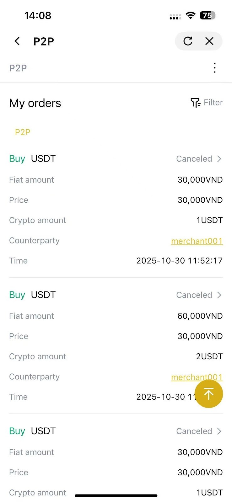 - Artık tüm P2P işlem kayıtlarınızın görüntülendiği "Siparişler" sayfasını göreceksiniz.