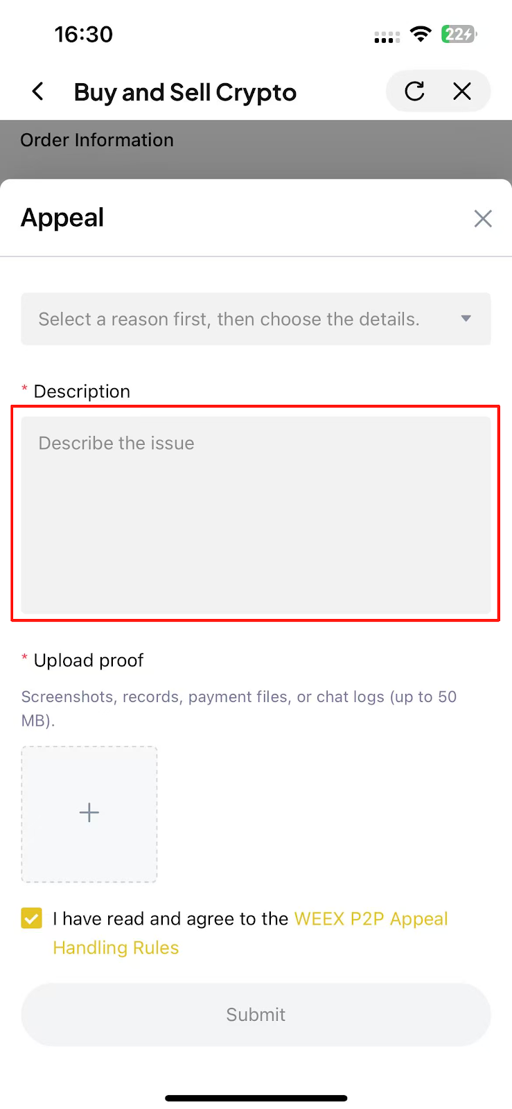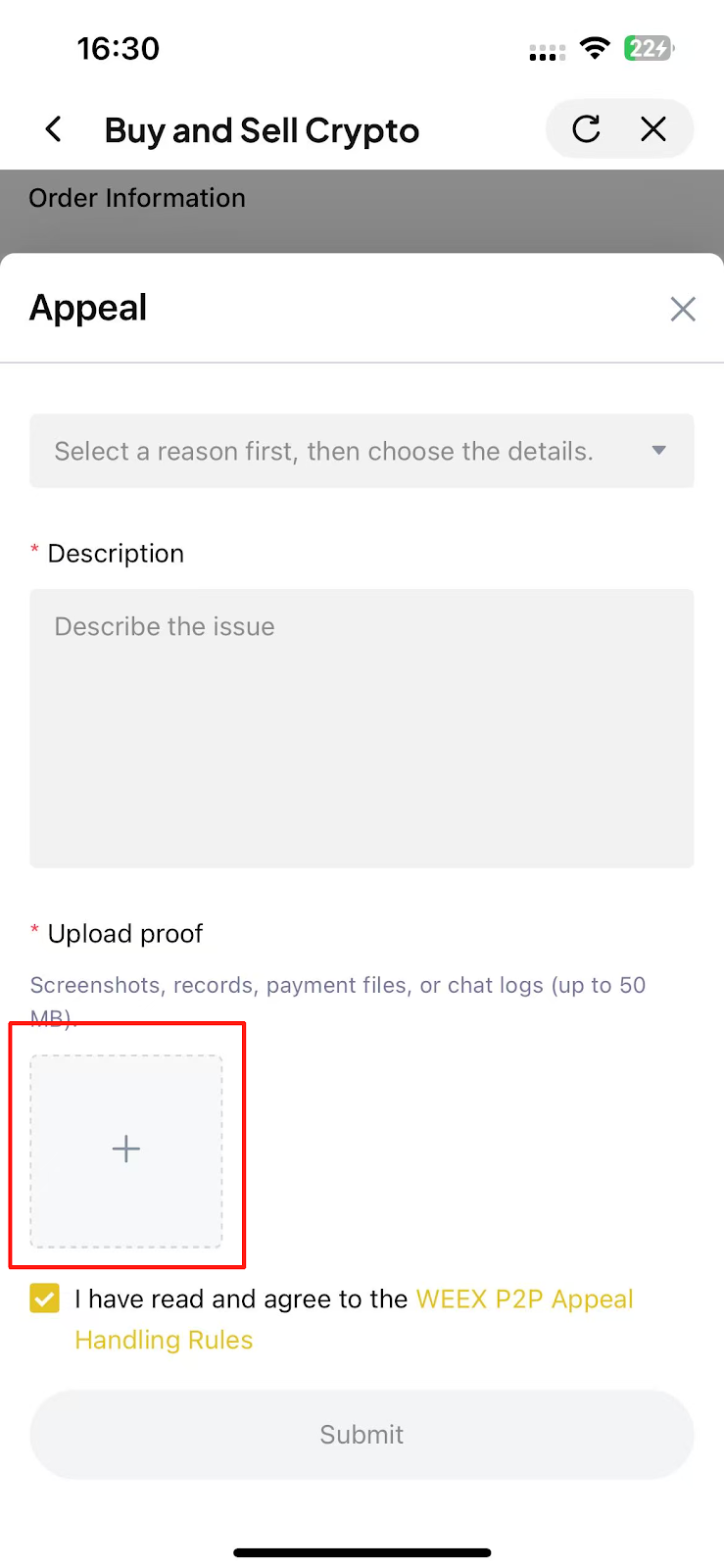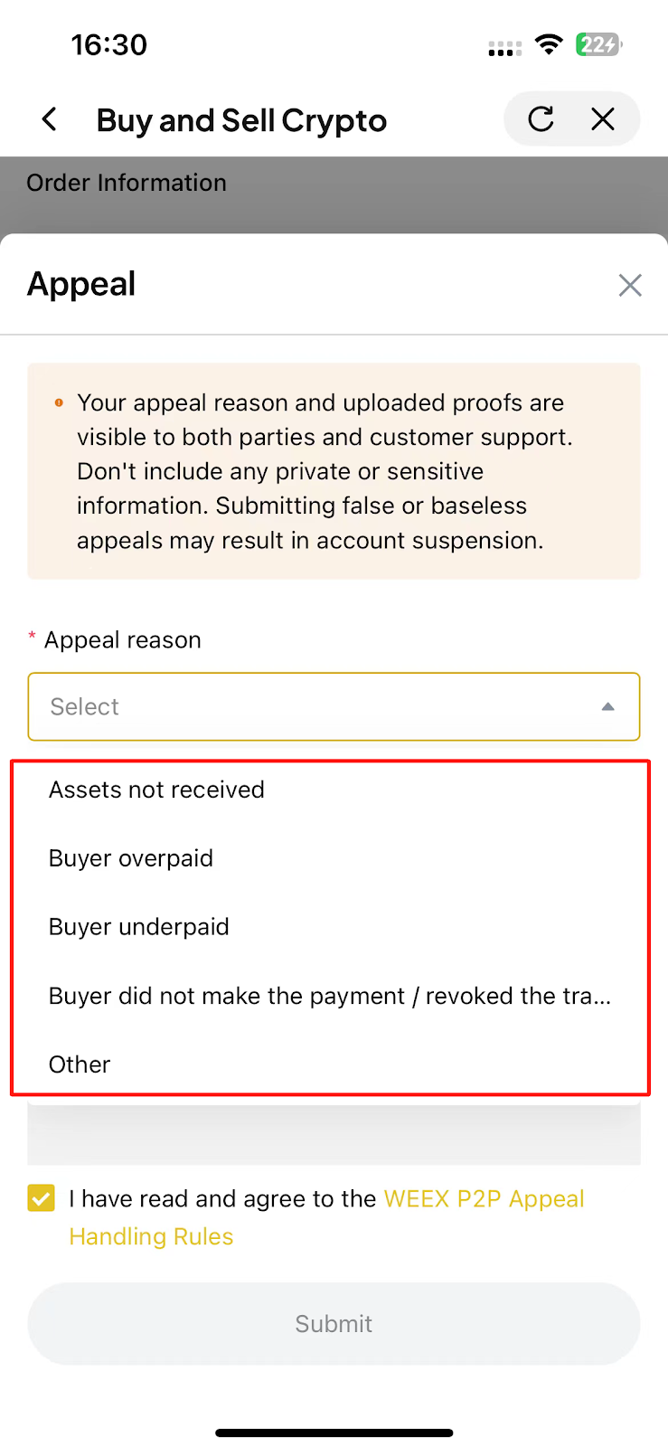 WEEX uygulamasında P2P itirazını nasıl gönderebilirim?